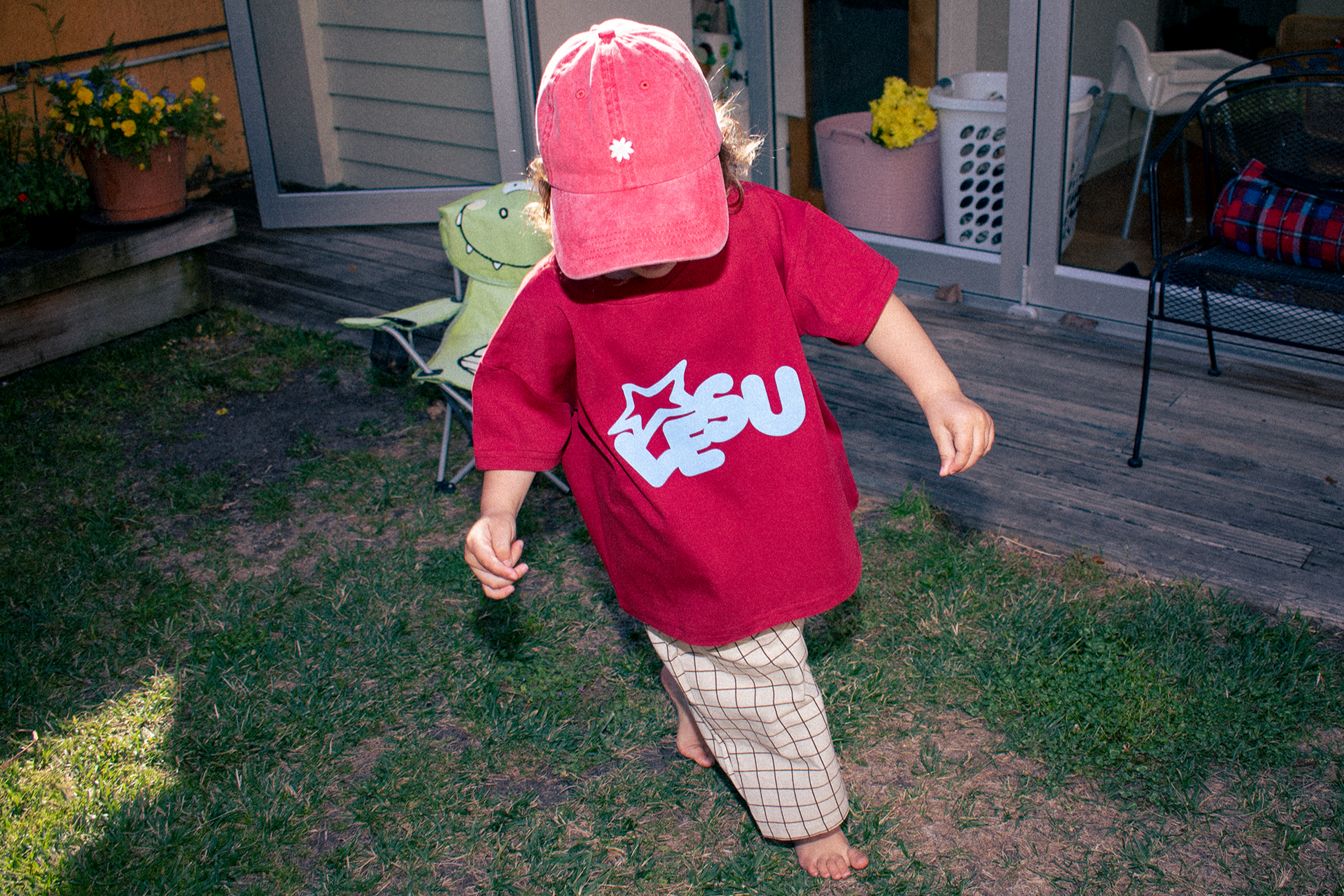 Child is 4 and wears an 5. Please note this is an oversized fit.