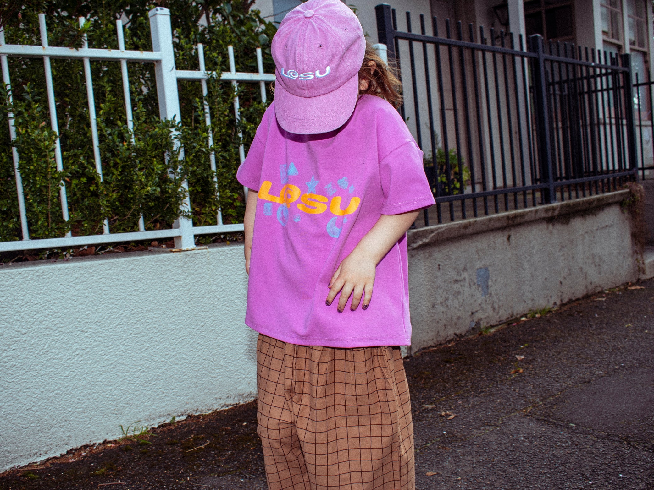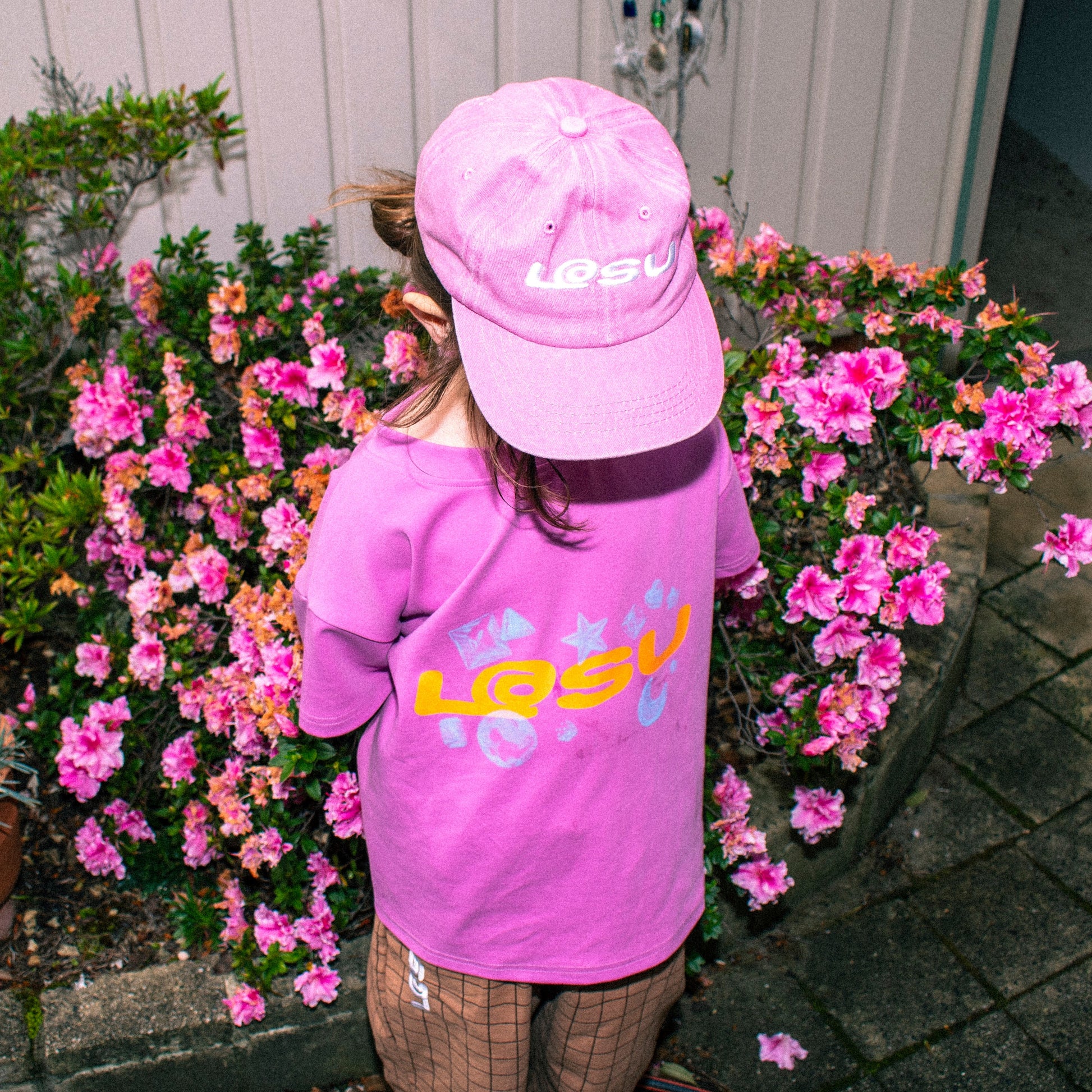 100% Cotton in washed pink with a white embroidery. Easy, comfy, and made for everyday adventures.